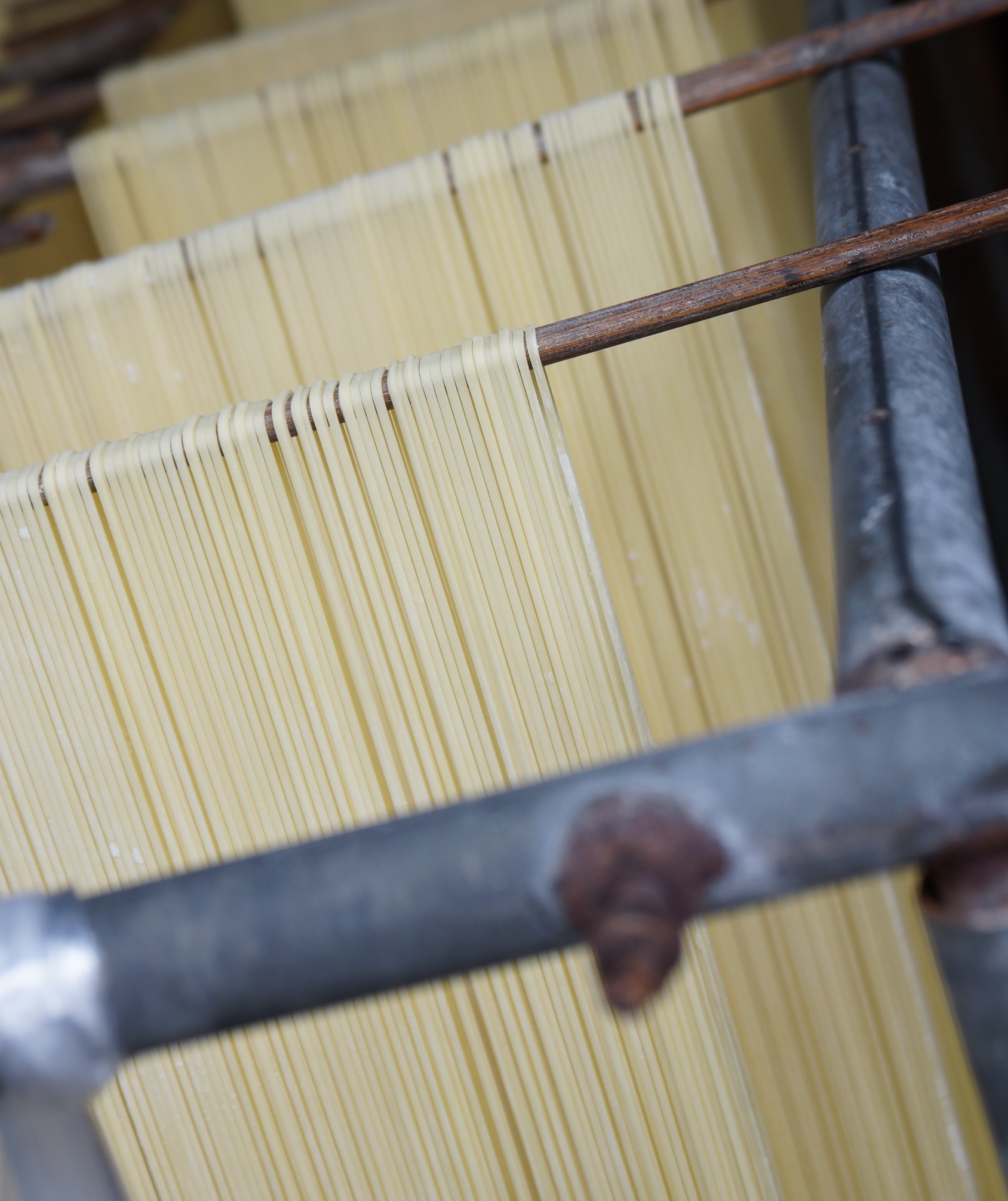 반죽한 밀가루를 길게 늘인 다음 2개의 막대기를 이용하여 늘리는 작업을 한 후 건조한 면을 뜻한다,
