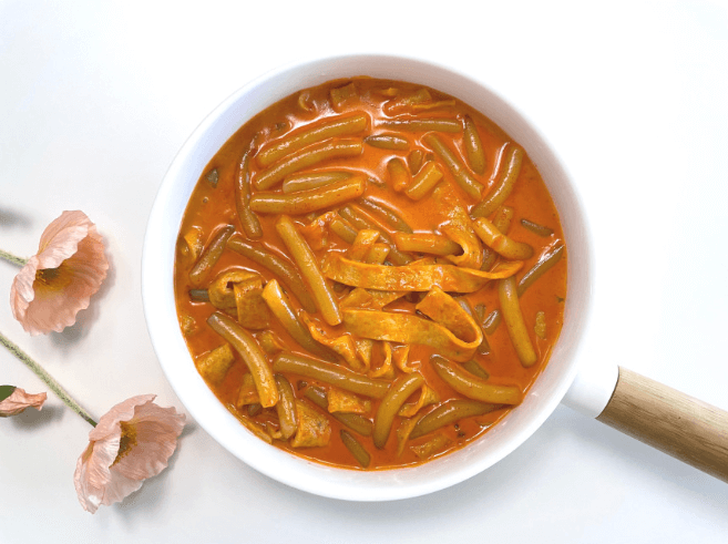 크림 떡볶이에 바질 페스토를 첨가하여 만든 떡볶이로 바질향이 풍붕하게 나는 것이 특징이다.